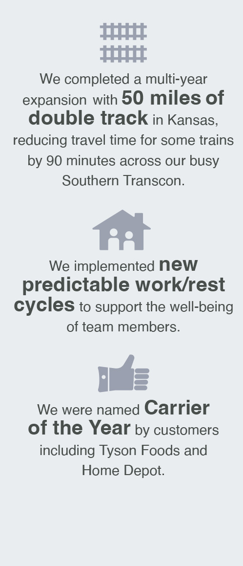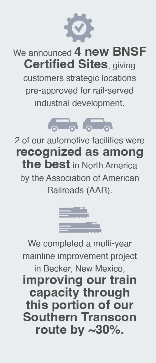 BNSF improved our ability to serve our customers in 2024, with highlights including:
