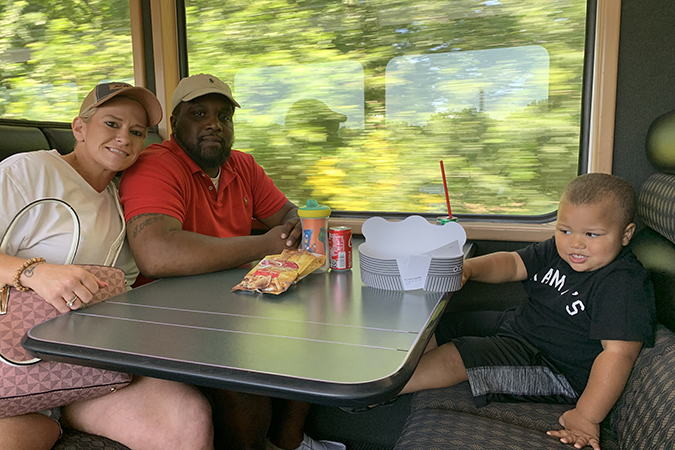 Gigi Robles, who works as a porter on the Business Car team, invited her daughter and grandchildren to enjoy the train trip with her.