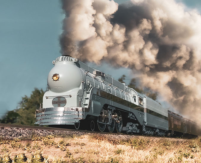In addition to his winning entry (above), Lindgren created this stunning scene of the Atchison, Topeka & Santa Fe Railway’s Blue Goose, a robin’s egg blue and silver locomotive, traveling from La Junta, Colorado, to Chicago.