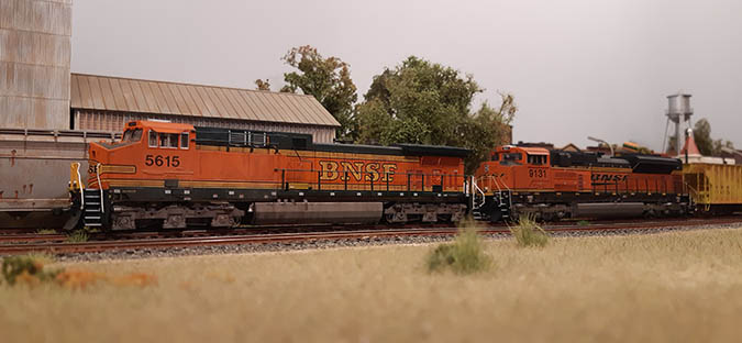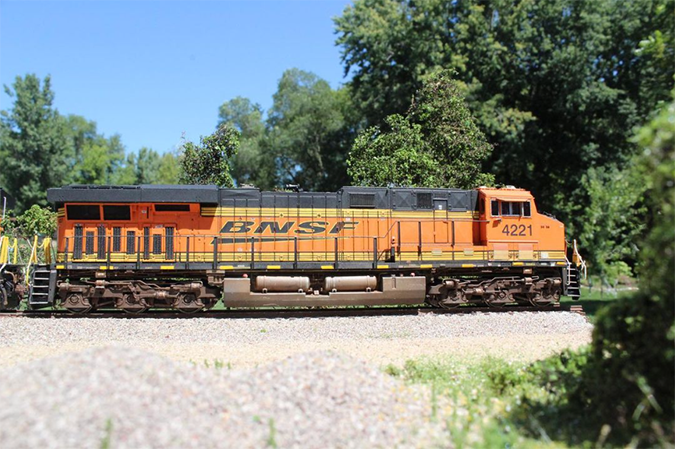 Look closely! This scene featuring a contemporary BNSF locomotive captured by Brady Skull is amazingly lifelike. How does he do that? Simple – this photo was taken outside while his layout is under construction inside.