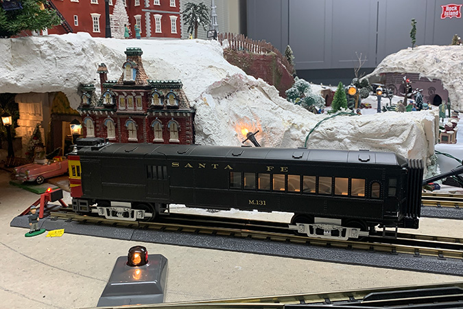 The residents in the club work on the layout by creating different scenes with items donated to the club. They also decorate the layout for Christmas.