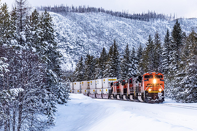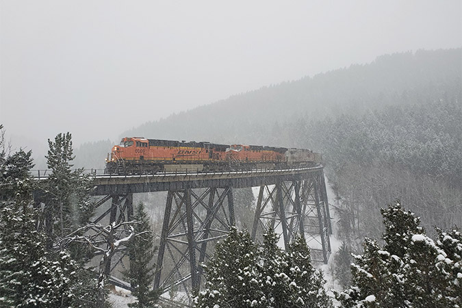 In the midst of the many challenges people have faced in the past several months, it’s good to see that some things never change. BNSF trains keep moving freight, and railfans keep capturing magnificent images of them, even in cold winter weather. We’ve scoured the entries from this year’s Winter Photo Contest to find the 10 most un-brrr-lievable scenes!