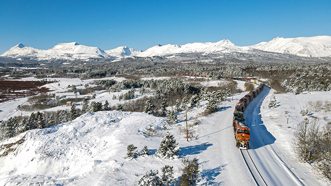 Trains are most often thought of for their practical value. They move goods and are the backbone of our economy. However, those with an artistic eye can also capture something more: their beauty. In the winter, the vivid orange of our BNSF locomotives is stunning against the contrast of white, snowy landscapes.