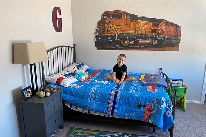 Grantley’s Mom: Our son Grantley has had a love for BNSF locomotives steady and strong for over three years now! He adores going train tracking on the weekends and waving at all the BNSF locomotives that come by. He even got a BNSF themed bedroom for his birthday this year!