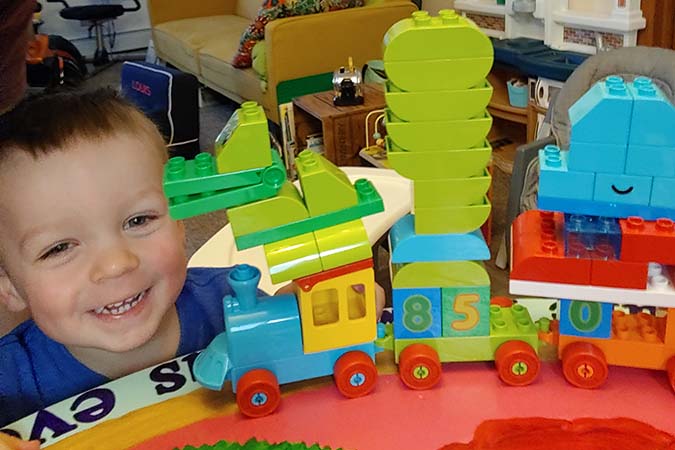 Abram loves playing with his wooden toy engines, riding his little mechanical train, waving at passing trains, and watching videos on the mechanics of trains.