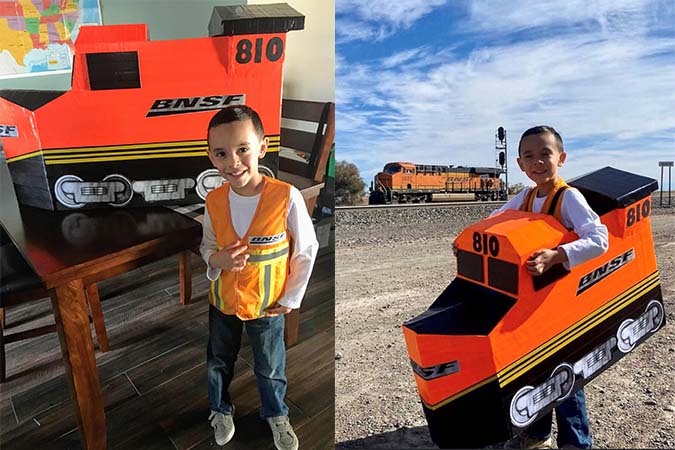 We received many fantastic submissions for this year’s Young Railfan Photo Contest! It was our hardest photo contest to judge yet. We loved them all and wish we could have fit all of them into this article! From costumes to toys and decorations, all the young railfans had a unique way of expressing their passion for trains. Thank you to everyone who participated and for showing your love of BNSF trains! Take a look below to see some fellow railfans.