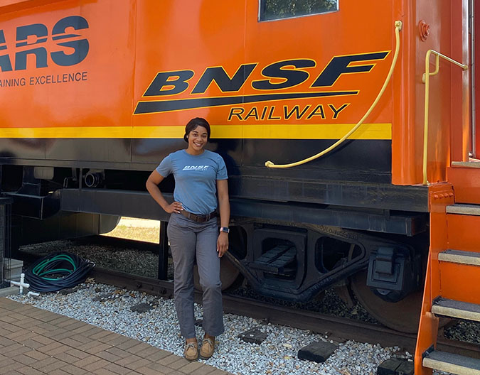 “I started in July, and I’m currently in training. Once I’m done, I’ll be assigned to Corwith, one of BNSF’s Chicago terminals,” she said. “When I visited the terminal for the first time, it was interesting and exciting. I shadowed trainmasters and worked with train crews, learning how trains are built and how freight cars are switched. I also met most of my peers and my location’s leadership.”